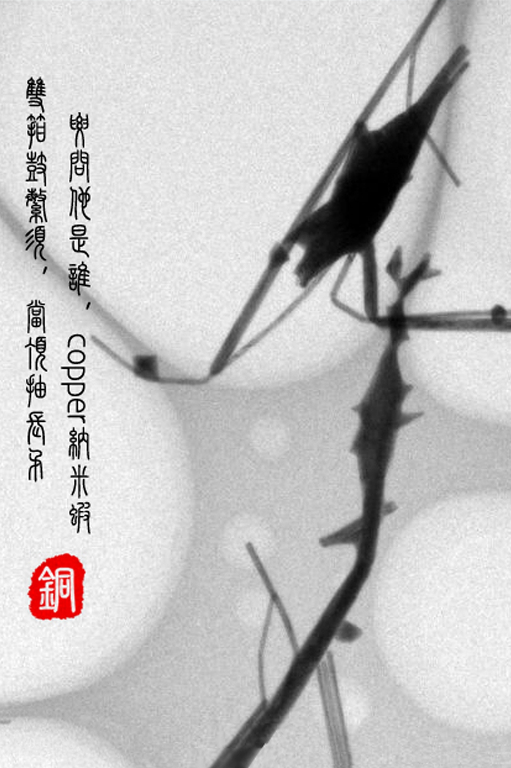 图为合成铜纳米线的残余纳米结构,该图片拍摄于铜纳米线的原位通气加热实验。整幅图案浑然天成,未经过任何染色处理。