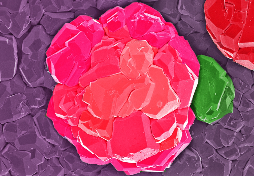 图片为使用日立场发射扫描电子显微镜SU6600观察到的高纯镁结晶,经染色处理。