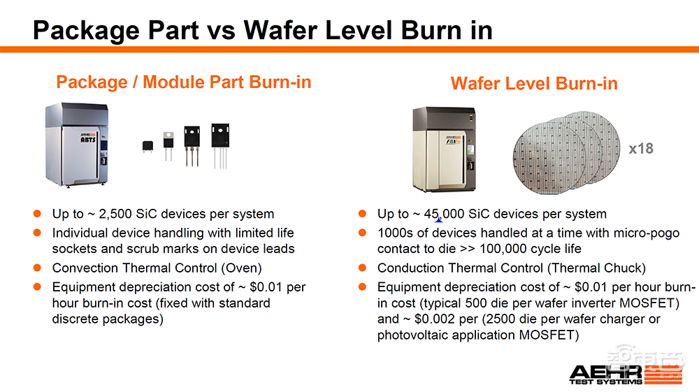 转向晶圆级老化时,成本节省是巨大的。如果满足汽车质量要求,那么每个SiC器件制造商都可以轻而易举地转向晶圆级老化。随着汽车制造商意识到这一点,一些汽车制造商甚至要求他们的供应商实施十几个小时的超长时间老化。因此,唯一具有成本效益的方法是使用Aehr。